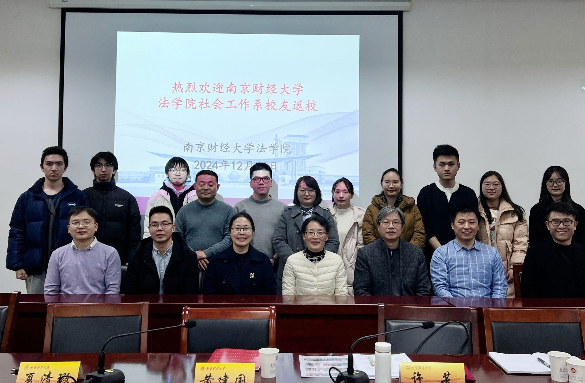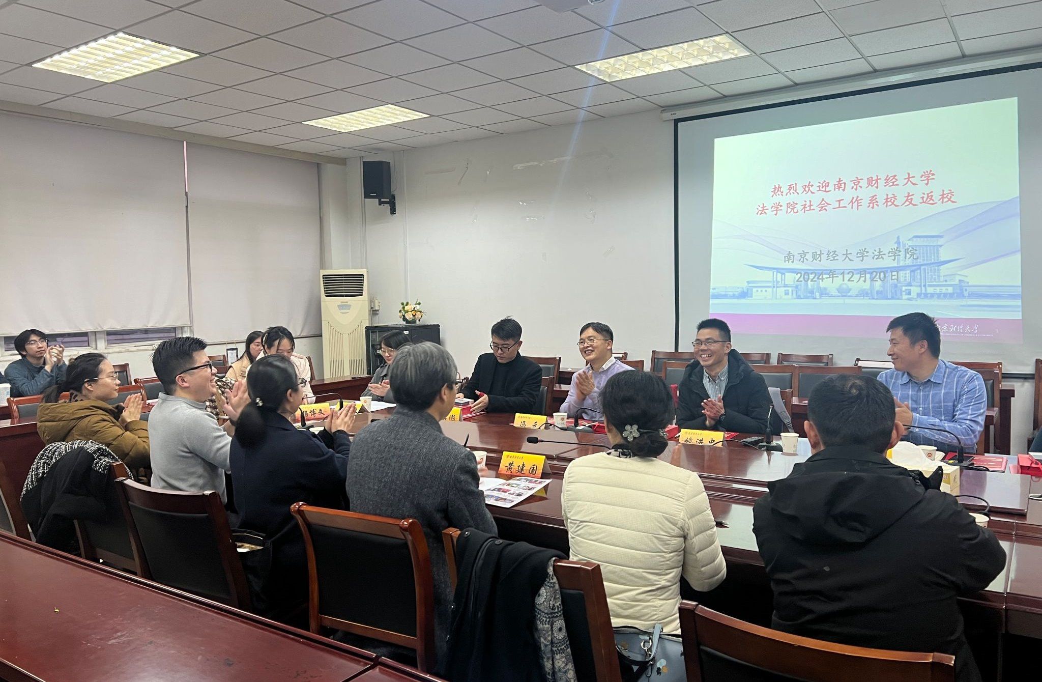 首先,许芸主任对前来的四位优秀社工校友分别进行了介绍。他们分别是2006届校友姚进忠,现为集美大学文宝马会官网 院长、教授,曾为南财录制“我为南财代言”招生宣传视频并推荐社工专业,参加了第一次“南财新锐社工圆桌会”和多次会议;2007届校友冯元,现为湖南师范大学社工系讲师,全国高级社会工作师;2007届校友岳耀蒙,南京市栖霞区启蒙社区发展中心理事长,高级社会工作师,多年来一直积极支持南财社工系发展,不仅为宝马会官网 举办会议捐赠资金,连续多年为学生提供专业实习和就业岗位;2012届校友闫昭澎,南京市社会儿童福利院社会工作部负责人,高级社会工作师,多年来一直关心母校发展。