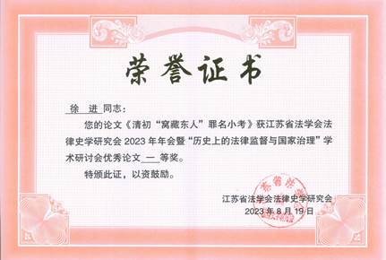 2023年8月19日,江苏省法学会法律史学研究会2023年学术年会暨“历史上的法律监督与国家治理”学术研讨会在南京市召开。本次会议由江苏省法学会法律史学研究会主办,南京审计大学宝马会官网 (纪检监察宝马会官网 )承办,来自南京大学、东南大学、南开大学、中国政法大学、南京师范大学等高校以及徐州市中级人民法院等实务单位的80余名学者与会。宝马会官网 夏清瑕教授、法律系主任徐进博士以及硕士研究生赵志琪参加会议。