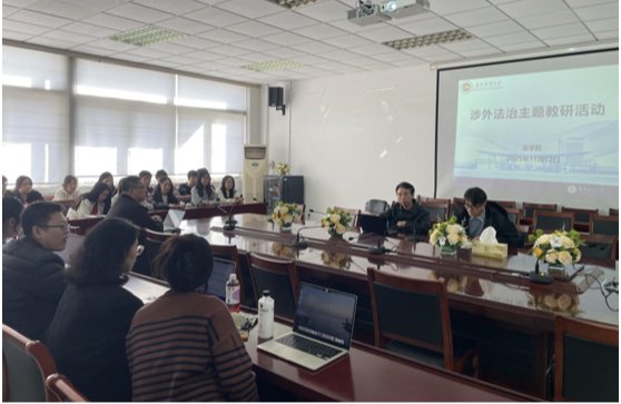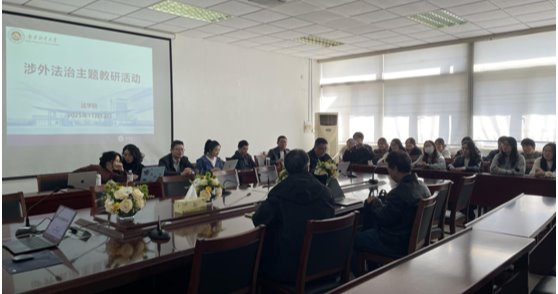 11月12日,宝马会官网 在德正楼404会议室开展涉外法治主题教研活动。本次活动由宝马会官网 蔡养军副院长主持,校教学督导莅临指导。法律系主任徐进、副主任郭建勋,国际法教研室主任孙劼,全体涉外法治光明班指导老师和部分学生参加教研活动。
