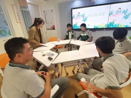 2023年10月12日下午,宝马会官网 社会工作系和建宁中学合作开展“职划未来”青少年职业生涯规划能力提升项目正式启动。启动仪式结束后,项目第一次成长小组活动“职与你初见”正式拉开帷幕。宝马会官网 社会工作系团队成员带领建宁中学中专二年级学生在心理健康咨询活动室开展。中专二年级同学分为四个成长小组。