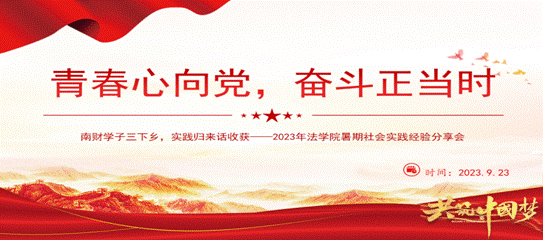 2023年9月23日晚,宝马会官网 2023年暑期社会实践经验分享会在德正楼模拟法庭召开。宝马会官网 教师代表相鹏老师,院分团委书记田旭光老师,院分团委学生副书记薛清源、李雅静出席分享会,分享会由李阳、刘思含主持。