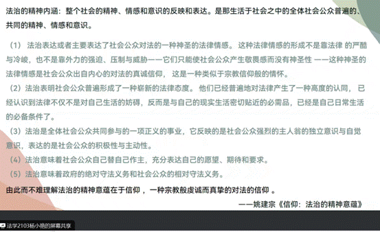 受限于物理距离,我们无法聚在一起分享阅读感悟。线上读书会作为连接读者的一种新型方式,也能够让我们共同探寻作者的世界,分享彼此的见解与感受。自2023年5月起到8月中旬,法学2103班全体同学在班主任王娅老师的带领下,充分利用暑期时间陆续进行了五次读书分享会。