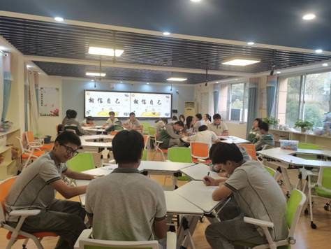 此次活动包括:心有千千结、我的快乐时代、故事会以及期待再相见等环节。首先,通过让学生们参与“心有千千结”的热身游戏,激发学生的参与兴趣,引导学生体验团队合作的重要性,共同克服困难。接着,在“我的快乐时代”环节中,小组工作者引导学生分别分享自己成功的经验,通过引导,同学们意识到不同人对于成功的定义和理解感受是不同的,每个人都有自己的闪光时刻,我们需要积极地肯定自己成功的经验,给予自己积极的心理暗示,相信自己!在故事会环节,小组工作者与同学们分享了“雨神”萧敬腾被音乐救赎的故事,同学们听完后深受触动并表示要学习萧敬腾走向成功的经验。最后,项目组成员对活动进行总结,结束了此次活动。