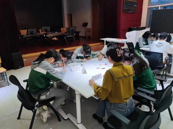 在小组活动的最开始,项目团队成员向大家进行了自我介绍和项目介绍。第一次小组活动由“热身游戏”“制作名片”“小组契约”三部分组成。为了活跃大家的气氛,项目团队成员带领大家进行了反字热身游戏,游戏过程中一些小组成员各自表演了一些才艺。紧接着,在项目团队成员的带领下各位组员一起学习与制作自己的席位卡与绘画小组的海报,一起商量确定小组的名字、口号等,并且制定了小组契约作为小组成员在活动中都需要遵守的规则。为了激发小组成员的各自的主观能动性,项目团队成员鼓励各位组员还写下了小组结束后期待完成的事。最后,小组成员们填写了本次活动的过程评估表。第一次小组活动在同学们欢乐的气氛中顺利、圆满结束了。