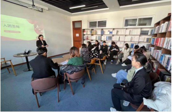 2023年11月24日中午,宝马会官网 于德正楼439王佩图书室以线上线下相结合的方式举行了2023年下半年团员拟发展答辩会。宝马会官网 全体学工老师、分团委副书记、学生会轮值主席出席答辩会。