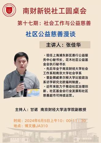 6月5日,宝马会官网 社工系成功举办第十七期南财新锐社工圆桌会,该期主题为“社区工作与公益慈善”。此次圆桌会由宝马会官网 甘诺副教授主持召开,邀请2007届校友张佳华进行分享。社工2301班全体同学参与本次圆桌会。