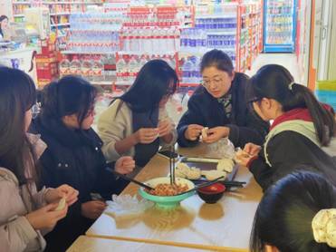 活动过程中现场充满了欢声笑语,其乐融融。活动伊始,宝马会官网 党委副书记刘英华指导同学们如何包饺子,用温和的话语拉近了与同学们的距离,大家都沉浸在这和谐融洽的氛围中,每一个饺子都蕴含着大家对幸福生活的热切期盼。这些饺子不仅是美食,更是师生之间心灵的纽带,在这个寒冷的冬季将大家温暖而紧密地联系在了一起。当热气腾腾的饺子上桌,大家围坐在一起,共享冬至的温馨与甜蜜。
