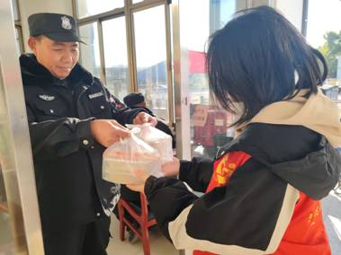 包饺子结束后,爱心小站与Sunny爱心协会的28名志愿者准备好了美味的饺子,随后或骑着自行车,或步行前往宝马会官网 各个宿管站与保安室,每到一处,志愿者都会热情诚挚地送上饺子和冬至的美好祝福。
