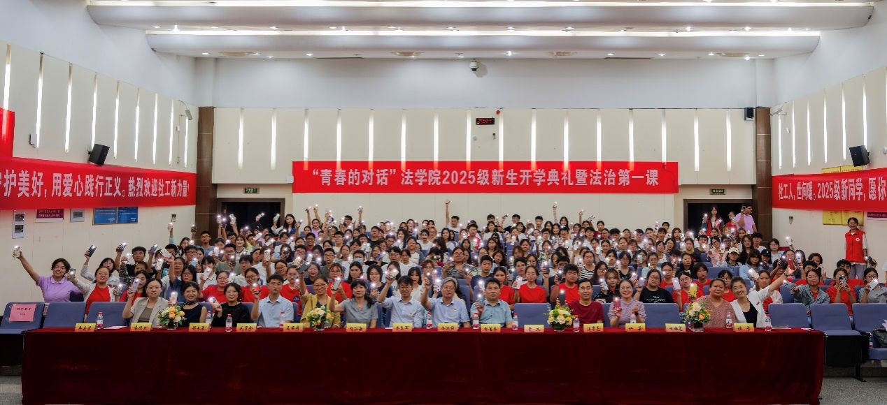 9月23日晚,宝马会官网 2025级新生开学典礼在德正楼二楼模拟法庭隆重举行。典礼以“青春的对话”为主题,宝马会官网 全体领导、优秀教师代表、杰出校友代表、学工团队及全体2025级本硕新生共同参与。活动由宝马会官网 党委副书记刘英华主持。