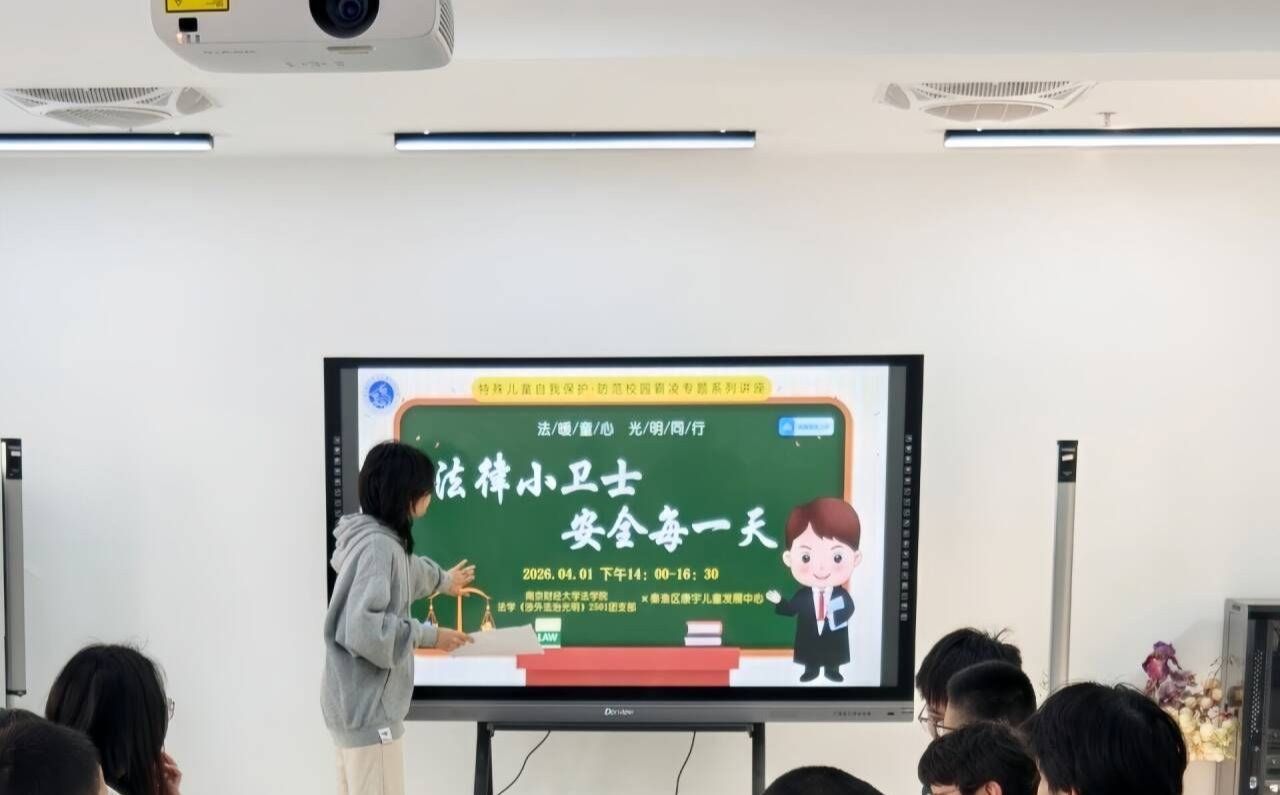 为深入践行雷锋精神,切实关爱特殊儿童群体,引导青年学子以专业所长服务社会,近日,宝马会官网 法学(涉外法治光明)2501团支部志愿者走进秦淮区康宇儿童发展中心,开展“法暖童心,光明同行——特殊儿童自我保护・防校园霸凌”公益讲座志愿服务活动。志愿者们以一对一陪伴为载体,通过互动游戏、情景模拟、手工实践等形式,帮助特殊儿童提升安全防护意识,掌握实用自我保护技能,用青春行动传递法治温度与人文关怀。