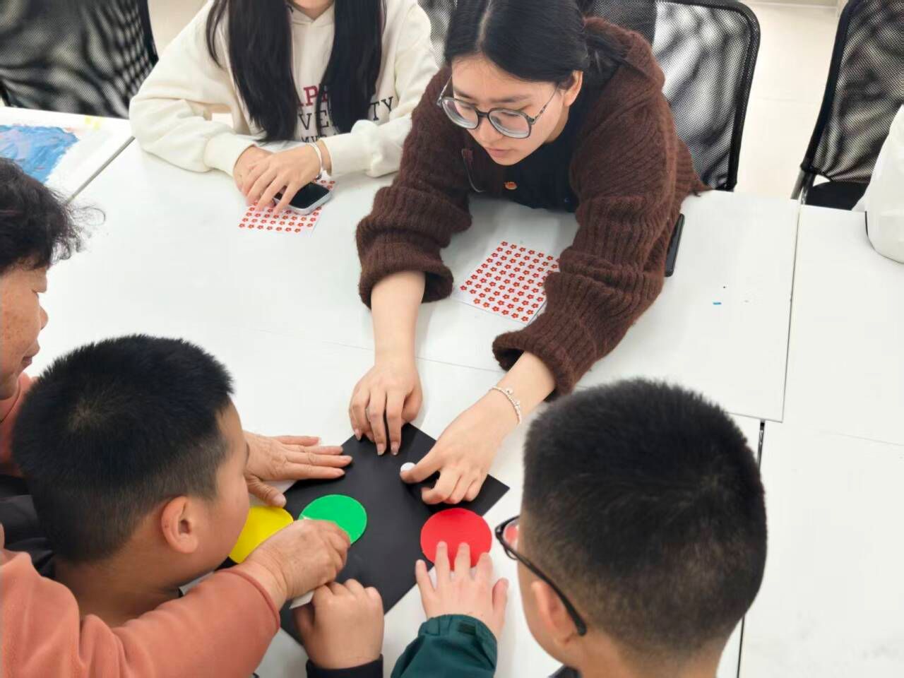 活动伊始,志愿者们以温和亲切的姿态与孩子们见面,通过简单自我介绍、友好肢体互动快速拉近与孩子的距离,耐心陪伴性格内敛的孩子,以手势、微笑搭建沟通桥梁,为活动顺利开展营造温馨融洽的氛围。