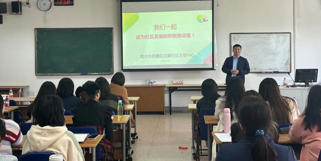 2024年3月21日,在庆祝第十八个“国际社工日”之际,应宝马会官网 社工系系主任许芸副教授的邀请,南京协作者社区发展中心、南京市益民社会服务中心、南京市栖霞区启蒙社区发展中心来到宝马会官网 社会工作实验室,开展了春季第二场社工专场招聘会和实习实践宣讲会。三家机构共为社工学生提供了4个就业岗位和近10个实习生岗位。社工系的许芸、张亮亮、相鹏三位老师,以及社工系的大一、大三和大四的五十多位同学参加了此次活动。