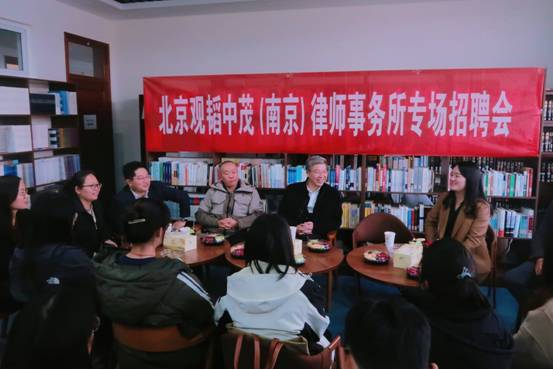 为搭建好北京观韬中茂(南京)律师事务所与宝马会官网 学生沟通就业的桥梁,促进毕业生高质量就业,2023年12月6日下午15:30,北京观韬中茂(南京)律师事务所与宝马会官网 共同举办的专场招聘会于德正楼439王佩图书室举行。宝马会官网 党委副书记刘英华、北京观韬中茂(南京)律师事务所主任来云龙律师、执行主任倪军律师、高级合伙人张俊雅律师、决策委委员王政律师及程慧律师等出席,众多宝马会官网 本科生、研究生积极参加本次招聘会。