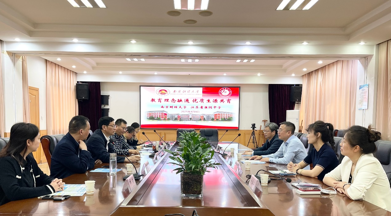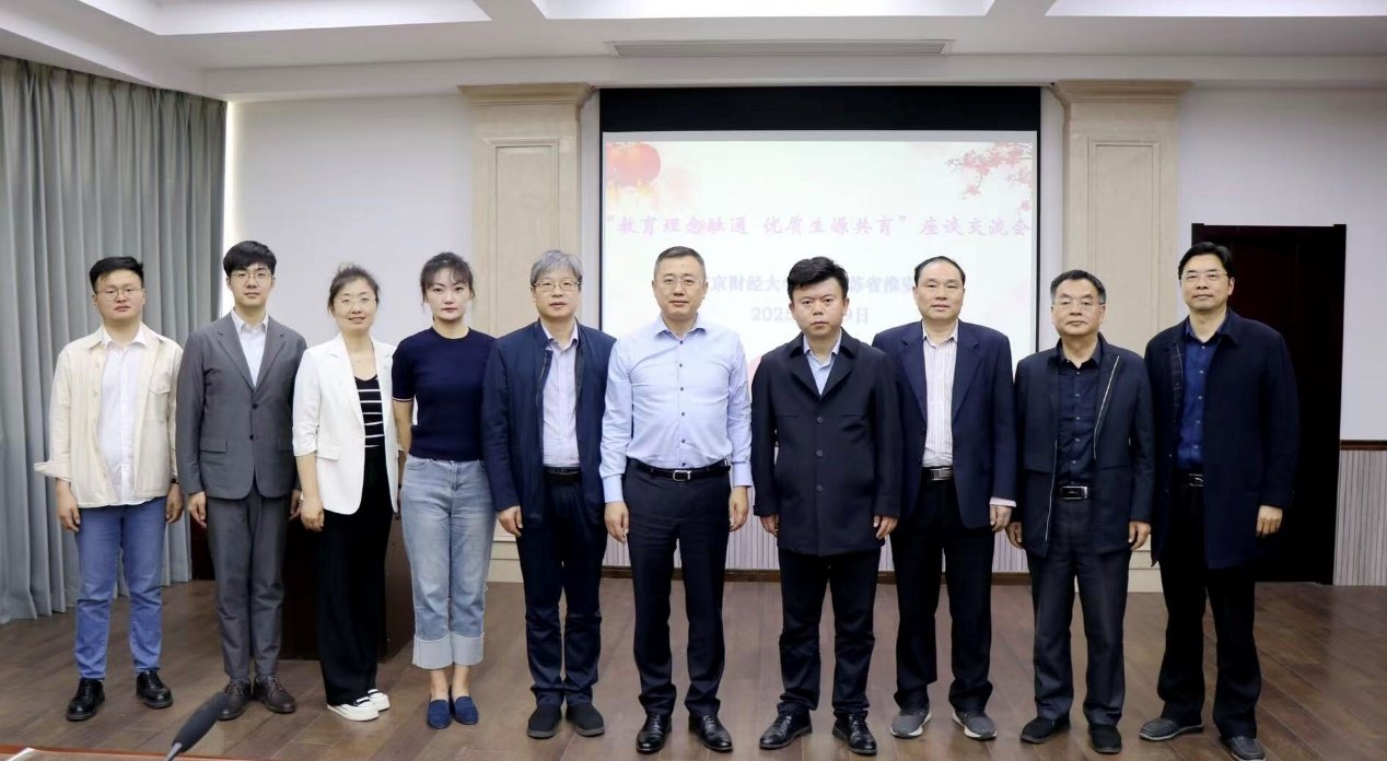 在淮安中学,该校党委书记、校长于敏介绍了宝马会官网 “五育并举”的育人模式。双方就“南财我来了”等主题研学项目进行了交流。
