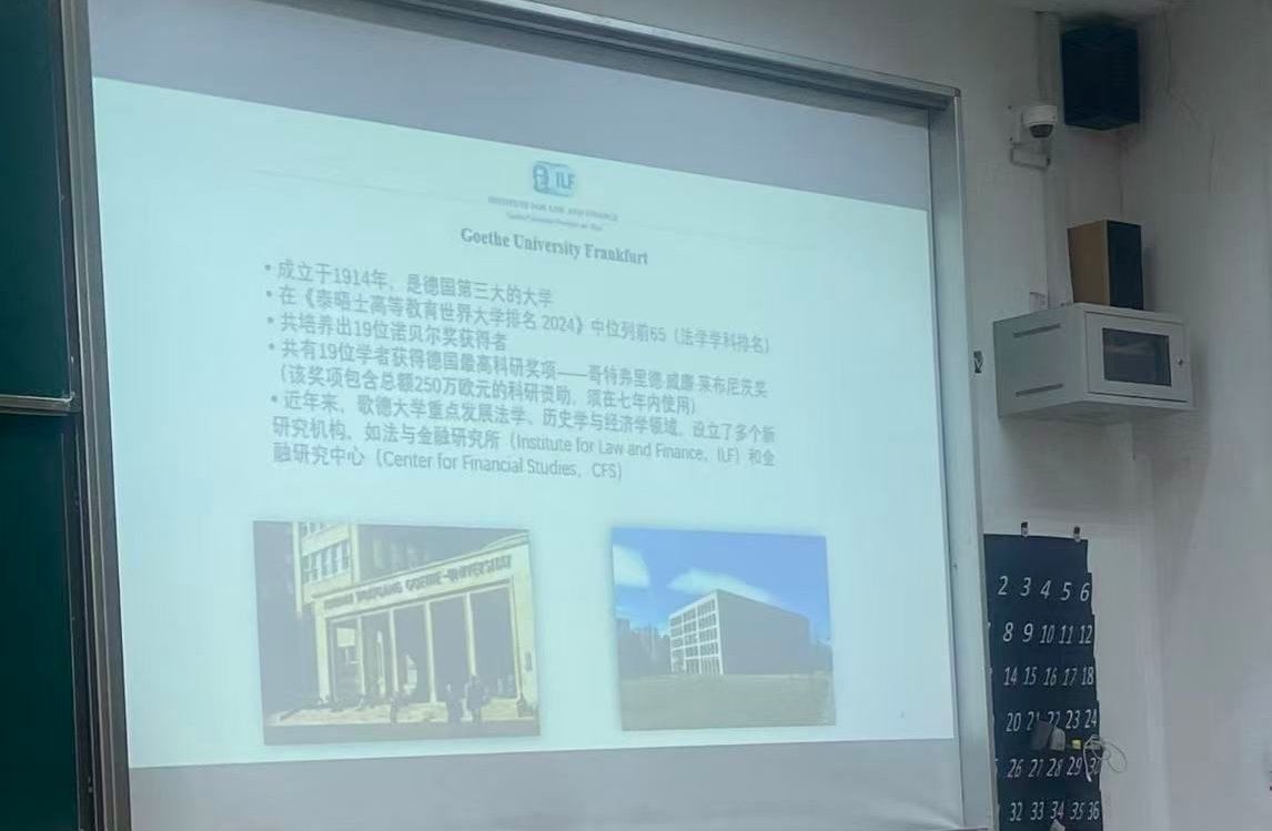 12月19日下午,宝马会官网 教师顾朱辰博士在德业楼101教室宣讲了两个国际交流项目。一个是德国马尔堡大学法学专业本科生交流项目,另一个是德国法兰克福大学法律与经济宝马会官网 “国际银行、证券与金融法法学硕士”项目。马尔堡大学法学项目发端于2010年,至今已有15年,宝马会官网 法学专业50多名本科生通过这个项目走出国门。法兰克福大学法学硕士项目今年签约,面向宝马会官网 法学专业和经管类专业的本科四年级学生及在读研究生,每年招收5人。